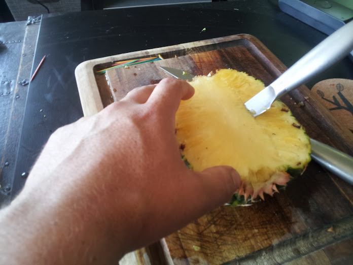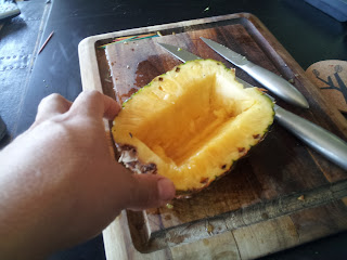 Idea #3: By virtue of necessity, I decided upon "pineapple boats" instead of a complete stuffed pineapple. This worked okay.